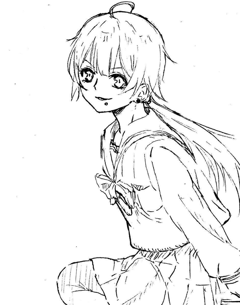 制服妙花。黒セーラーとか似合いそう。 ペン入れ仕上げの時間取れなそうだから下描きのみ。 #ちょう絵き