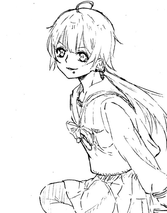 18 58 制服妙花。黒セーラーとか似合いそう。 ペン入れ仕上げの時間取れなそうだから下描きのみ。 #ちょう絵き 22/06/05 12:51