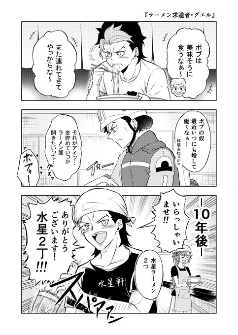 1912 10.3K ラーメン求道者・グエル。 本編が殺伐としそうなので平和なボブを今のうちに描いとく。 #水星の魔女 22/12/18 20:18