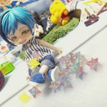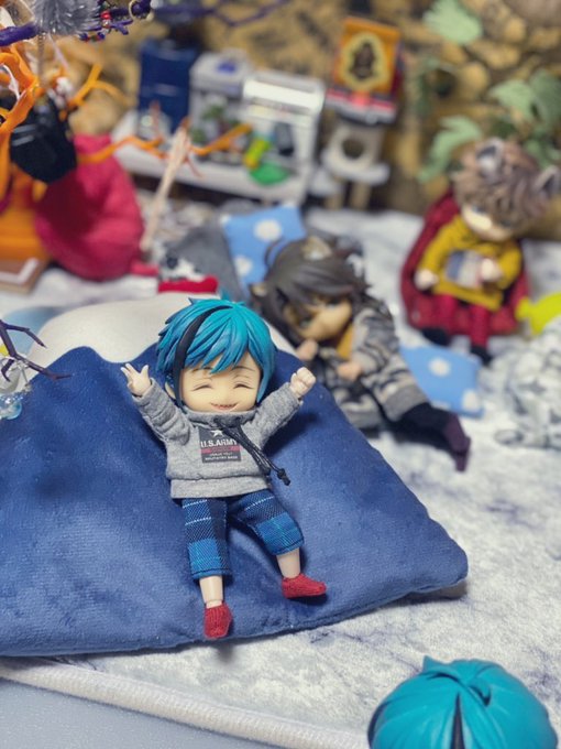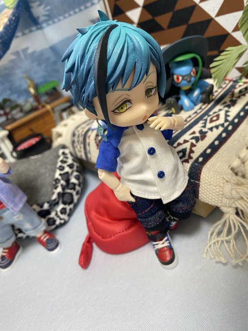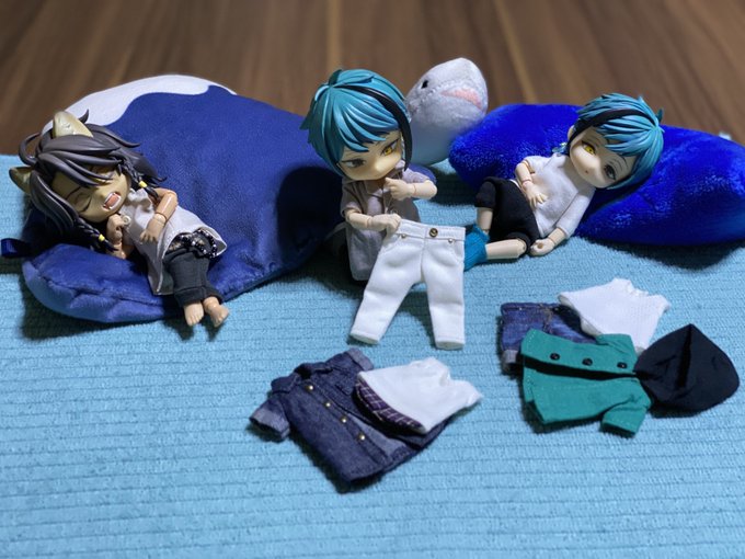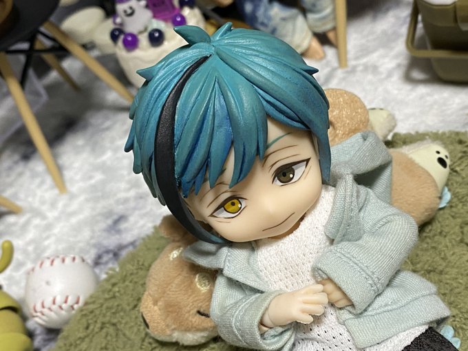 とりあえずフロイドのヘッドはできた( ˙꒳˙ )و✨ いつもの如く公式には似てないの知ってる🥲 顔はデスクトップアーミーより大きくておでこも広くてデコ出しっ子にはいいね いや、もうめっちゃ立ってくれる 優秀だぜアクアシューターズ 服は当分この格好だろうな( ˙꒳˙ ) #アクアシューターズ