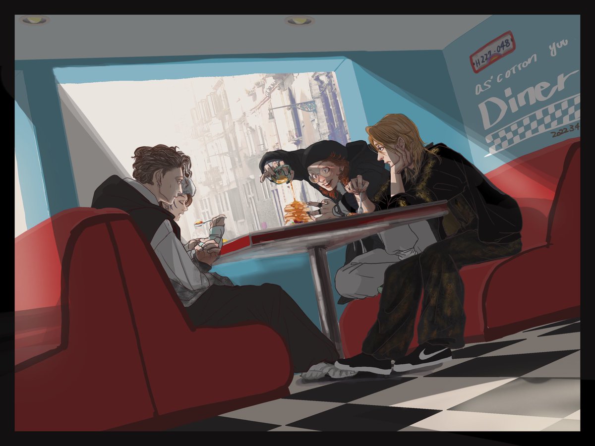 165 660 妄想ダイナー。背景描ける人本当天才…背景描き慣れて無さすぎてしんど😭 22/03/05 00:46