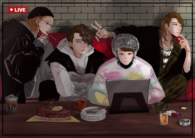 やっと全員描けたので、タグとテンプレお借りしました😌 別々に描いたから色味がバラバラやけど…。D4描けて楽しかった✨ #D4描いてみた