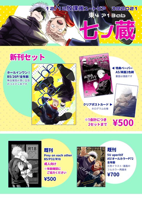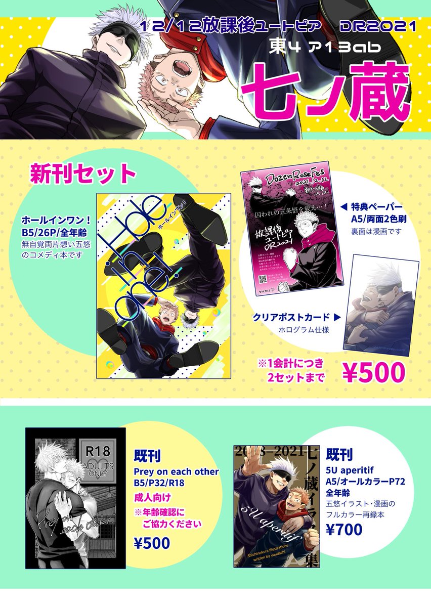 52 483 12/12 放課後ユートピア DR2021 お品書きです☺️ 新刊に付くペーパーとクリアポストカードは会場限定になります よろしくお願いします🌸 21/12/05 01:51