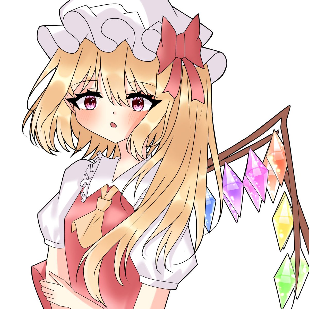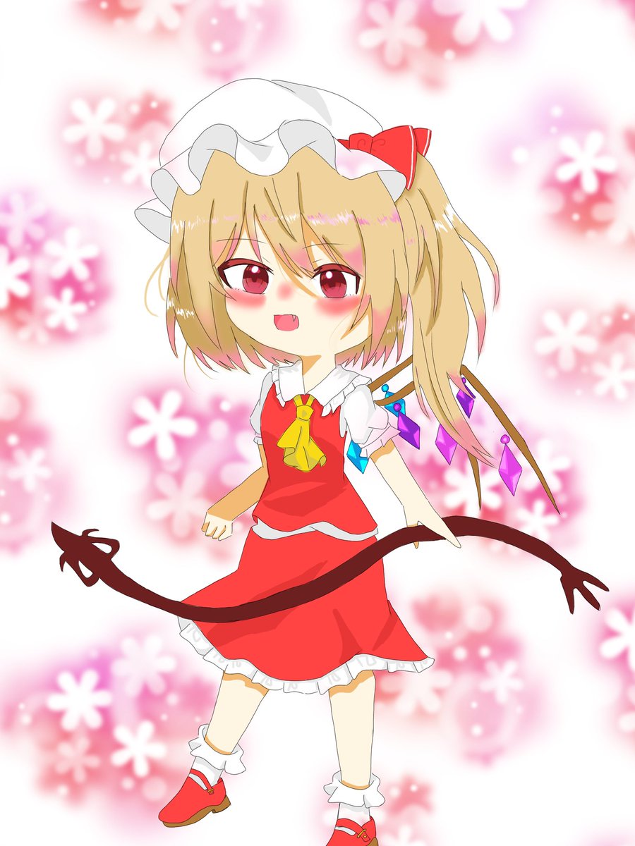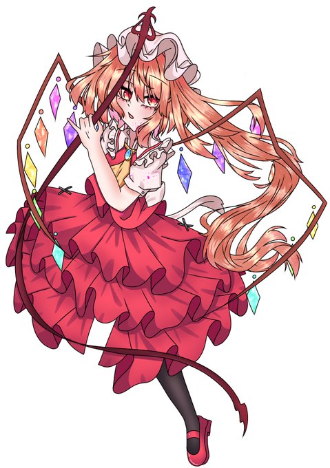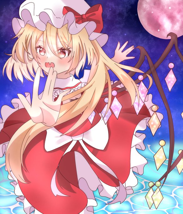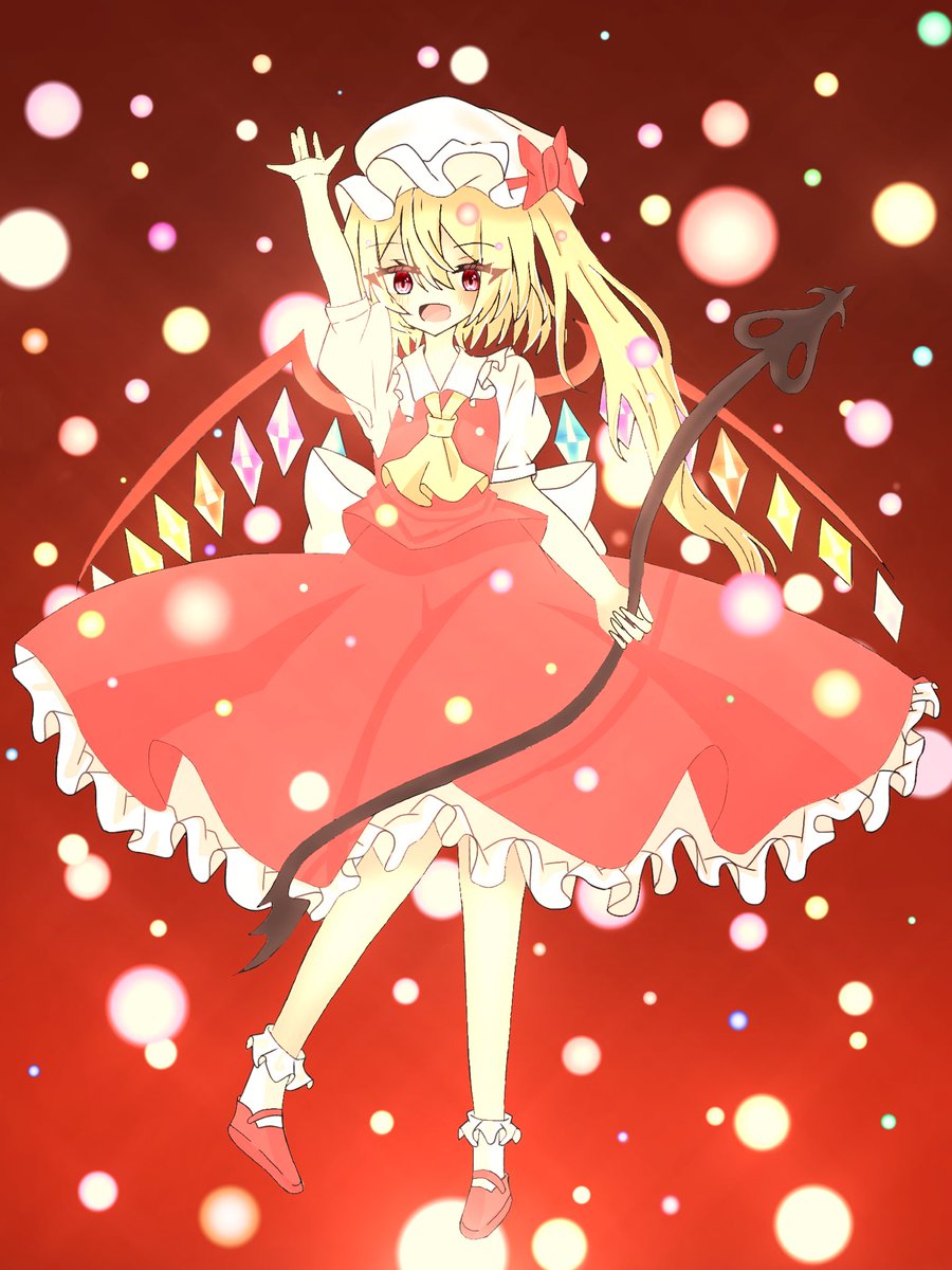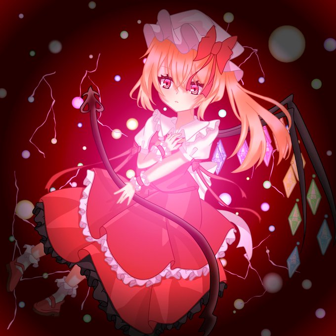 フランちゃんです~! やっと背景描きましたわぁ(弾幕と雷みたいなやつ!後は加工) かなりの自信作です!(`・ω・´) #東方project #フランドール・スカーレット #絵柄が好みっていう人にフォローされたい