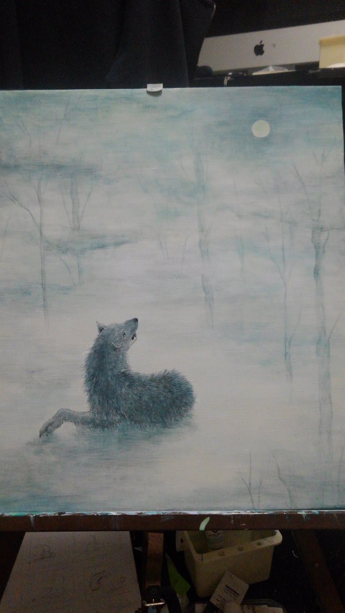 #オオカミ大好き通販 #オオカミとっても大好き展8 【タイトル】霧しぐれ(加筆修整) 【サイズ】A3 【価格】¥30,000 見通しが難しい中でも歩みを止めない姿を描きました。通販も可です。どうぞよろしくお願いいたします。