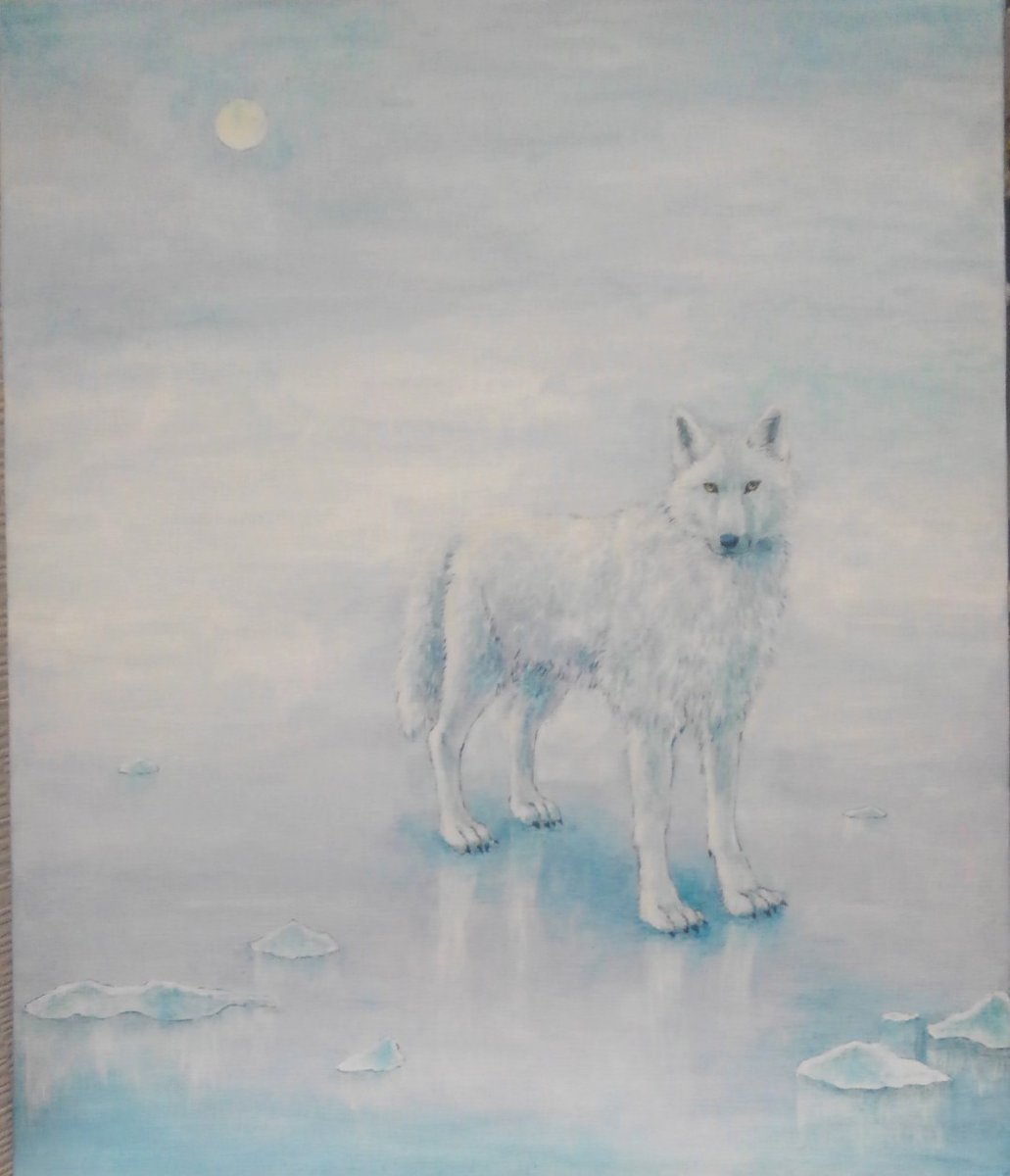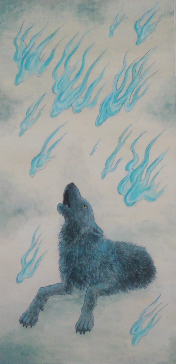 #オオカミ大好き通販 #オオカミとっても大好き展8 【タイトル】祓え、祓え 【サイズ】300×150(mm) 【価格】¥25,000 静かに、でも力強く守ってくれる絵となるようにと描きました。通販も可です。どうぞよろしくお願いいたします
