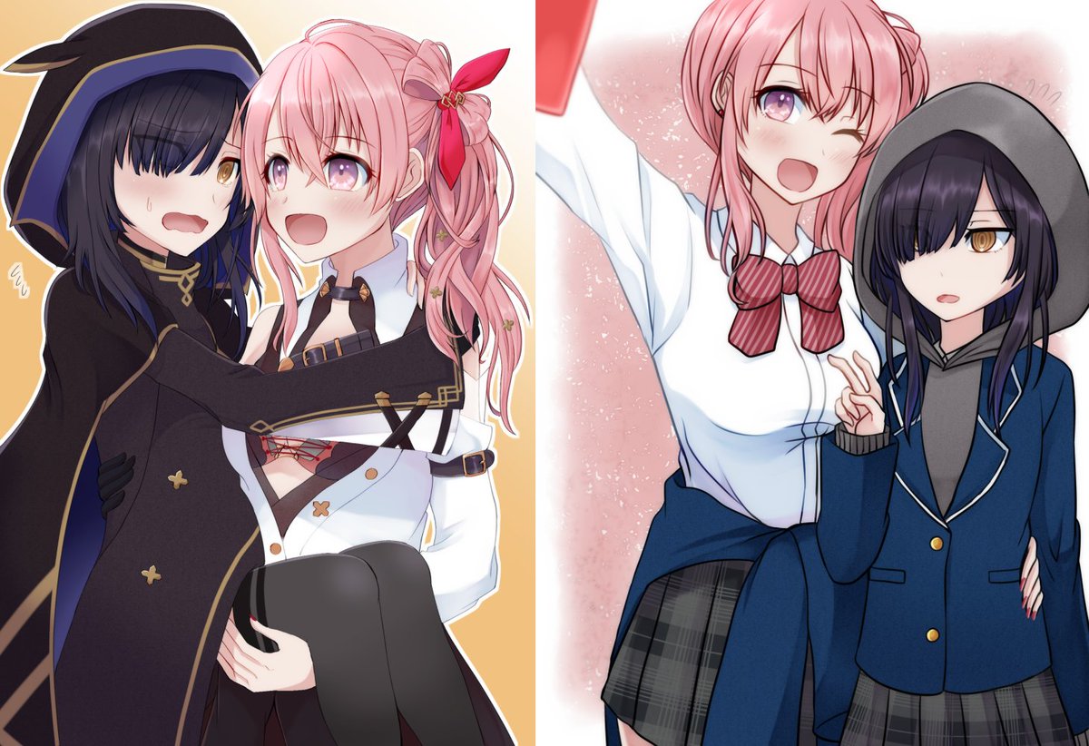 自カプを描いたり担当の誕生日を祝ったりうちよそ百合をする為に立ち絵をしばいたりしていた #今月描いた絵を晒そう
