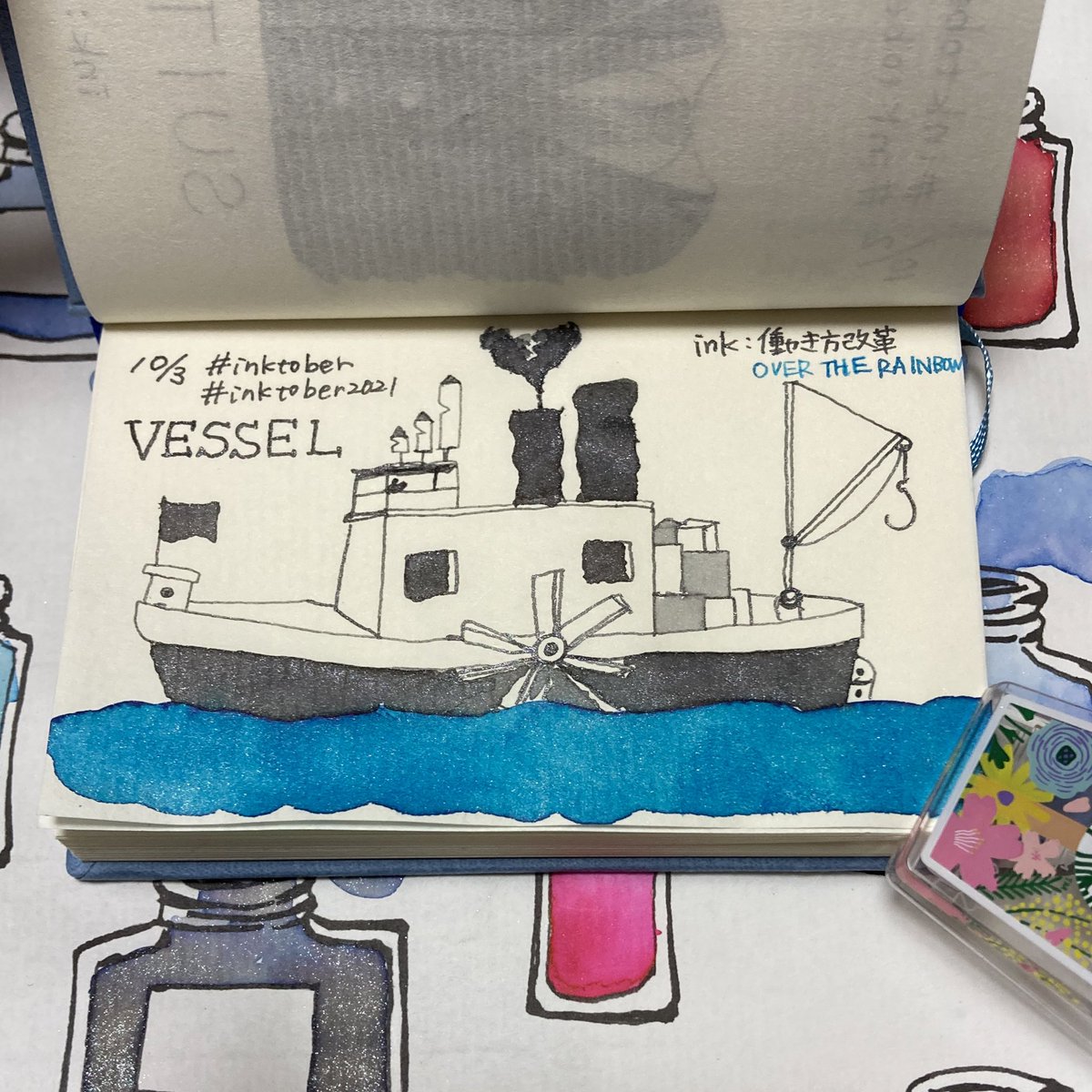 いんくとーばー 頑張って追いかけてます 船は、わかる人にはわかる船✨ #ガラスペン #インク沼 #とのりむインク #inktober #inktober2021