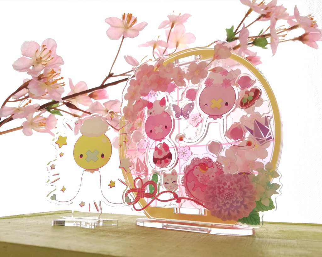 印刷所に頼んでいた オリジナルぷわわ(苺・桜)のアクキー(+🌸🍒のポフレ) & 色違いフワンテのアクリルスタンド !!!めっちゃかわいくてテンション上がる⤴︎ ⤴︎✨