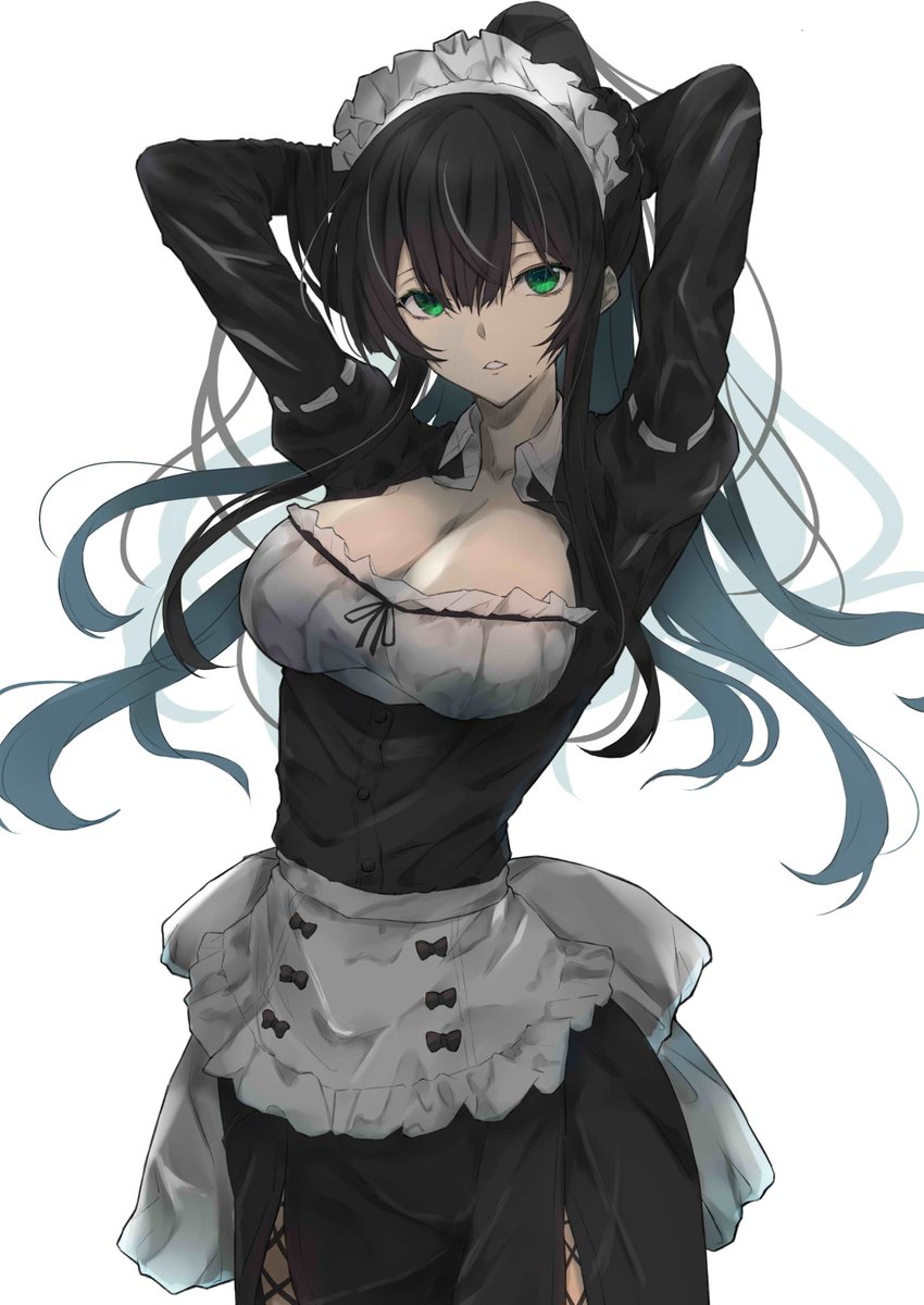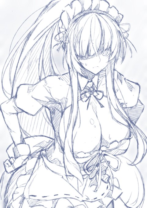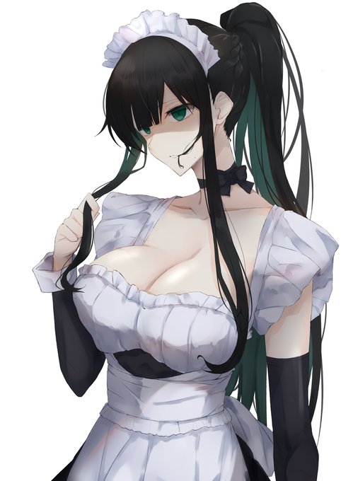 クロ #オリジナル #女の子 #メイド #オリキャラ #おっぱい #黒髪ロング #ポニテ #メイド服 #ムッチリ pixiv.net/artworks/10379…