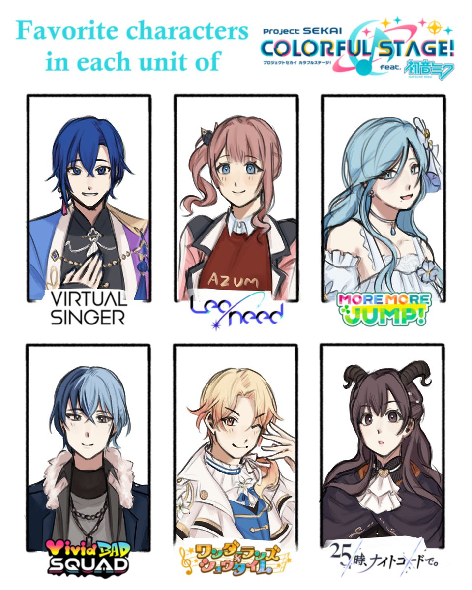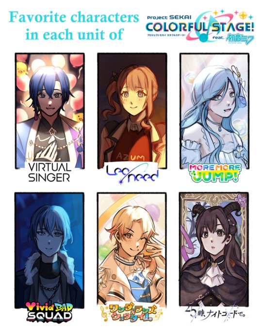 finally had the time to do this :)) fav from each unit + fav card from them #prsk_FA