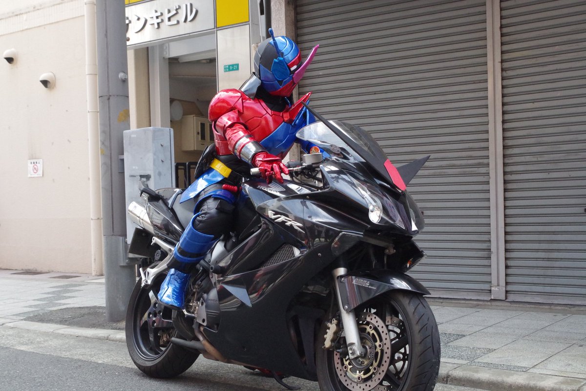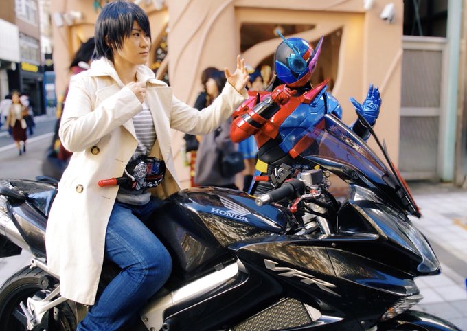 「さぁ、実験を始めようか! #バイクの日 #8月19日はバイクの日 #ホココス2019 桐生戦兎 @Nayun_10932cos さん 仮面ライダービルド @MaskedriderUSJ2 さん