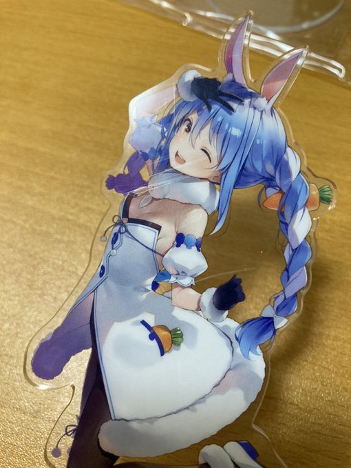 【「兎田ぺこら アクリルスタンド」をご購入いただいた皆様へ】印刷所から連絡をいただき現物を確認したところ、非常にわかりづらいですが画像のように保護フィルムが貼られています。飾る時は剥がしてお楽しみいただければと思います。