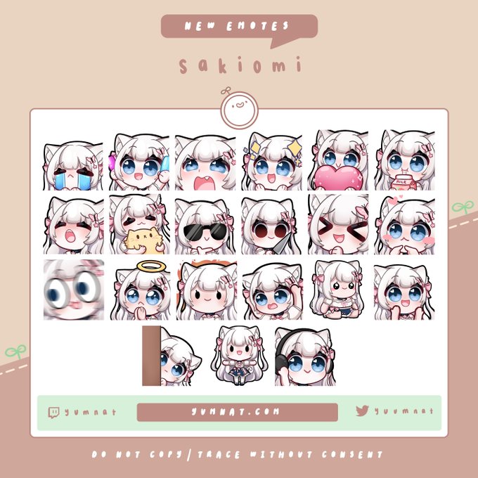 i was given the opportunity to work with @sakiomii for her emotes!! this is probably my biggest emote commission yet, and i'm so happy with the way they turned out! i hope you and your chat love them ^-^ - - - - - #sakiomiart #twitch #emotes #commissions