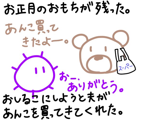 今日のお昼は夫の作ったおしるこを食べました🎍🐇 こしの方が上品だけどつぶの方が小豆本来の存在感じられて美味しいよね??? #イラスト好きさんと繋がりたい #絵描きさんと繋がたい #いいねした人フォローする