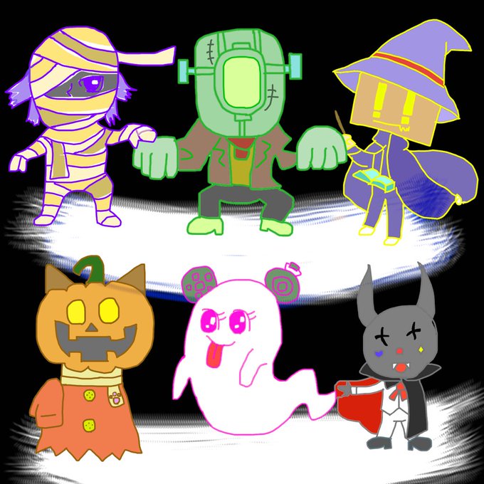 31日はエペの余韻が残りそうなので、ここらで投下します! ハロウィン🎃ビントロール n番煎じ。 とりっくおあとりーと🍭 (⚠️トレスあり) 🐶ミイラ 🤖フランケン 📦魔法使い 🐱ジャックオランタン 🐻おばけ 🐰ドラキュラ #bintrollFA