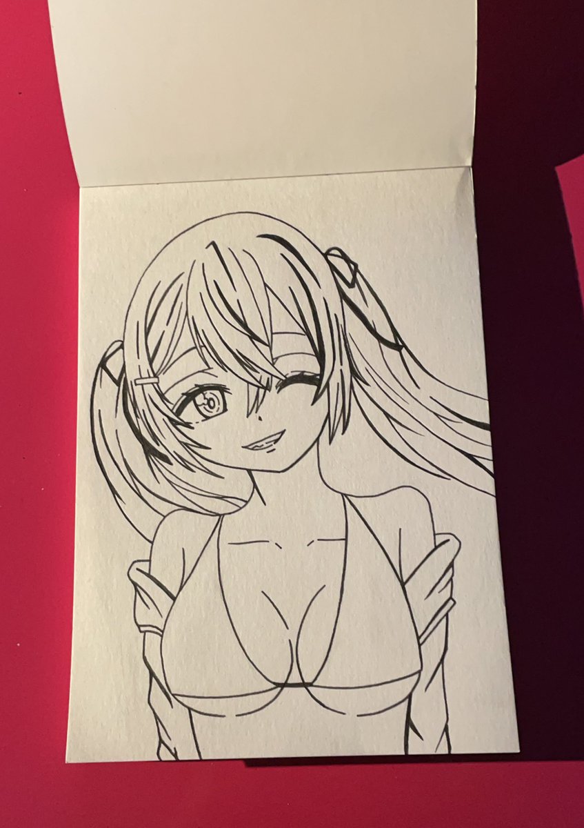 初めて水着の絵描きました! 新衣装可愛すぎる(≧∇≦) #マリンのお宝 #宝鐘マリン新衣装 #宝鐘マリン生誕祭 #宝鐘マリン #イラスト
