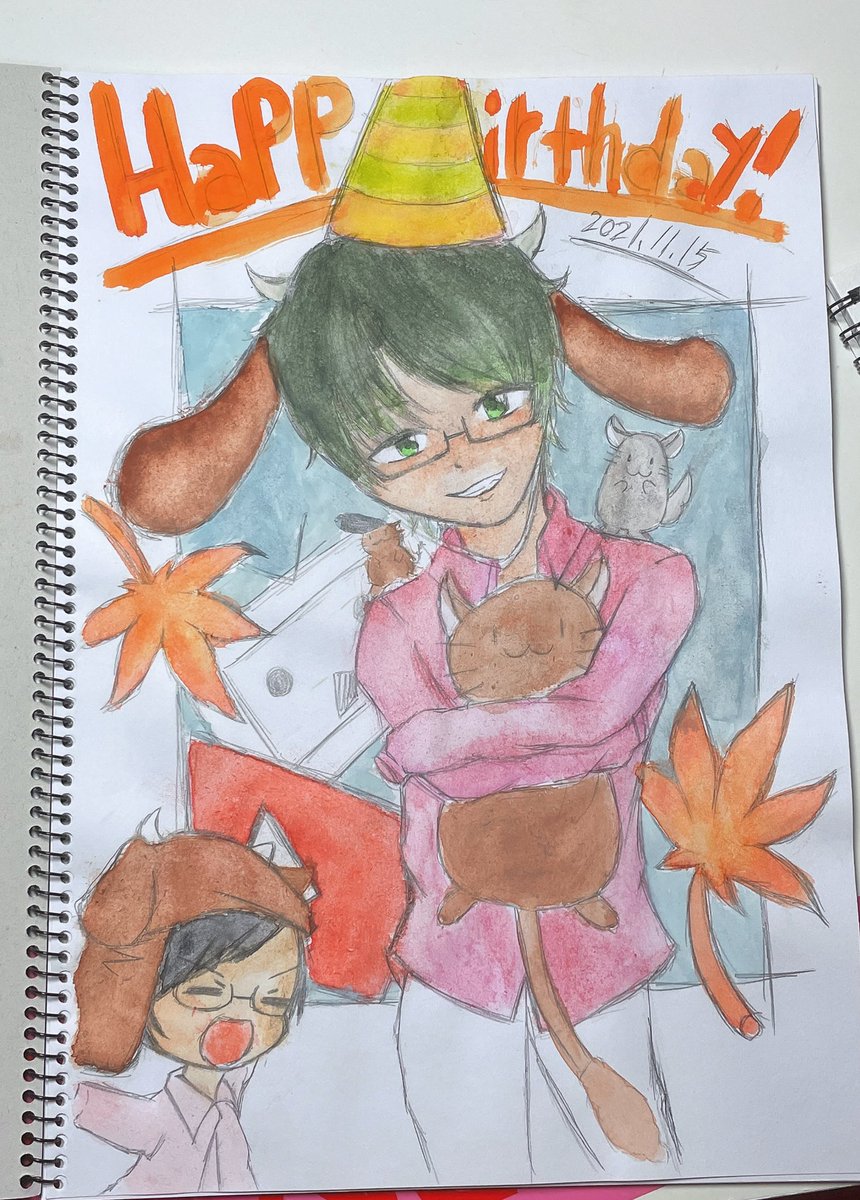 3 37 お誕生日おめでとうございます(≧∇≦) 初めての水彩絵秋っぽくした #牛沢誕生祭2021 #誕生日イラスト #イラスト #水彩画 #水彩イラスト #牛沢誕生祭 #牛沢生誕祭 #牛沢 #アナログイラスト #ファンアート 21/11/15 13:40