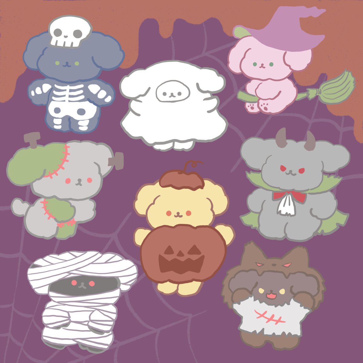 おいぬたちのハロウィーン🎃👻🕸🐺☠️ #イラスト