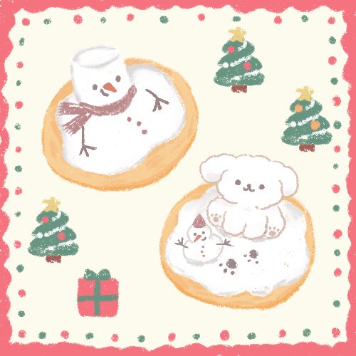 スノーマンクッキーとおいぬ⛄️🎄🎁 #イラスト