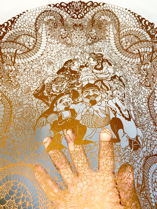 📣新作‼️リツイートして頂けると嬉しいです📣 おめでたい切り絵を作りました!たくさんの方に見て頂きたいので、拡散何卒よろしくお願い致します‼️٩( ᐛ )و カッターナイフで描くように切り抜いたイラストレーションをご覧あれ〜👐 #切り絵 #papercuttingart #art