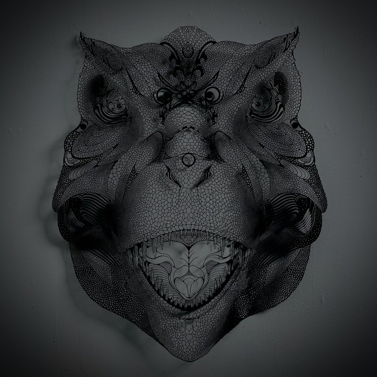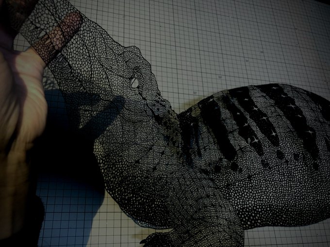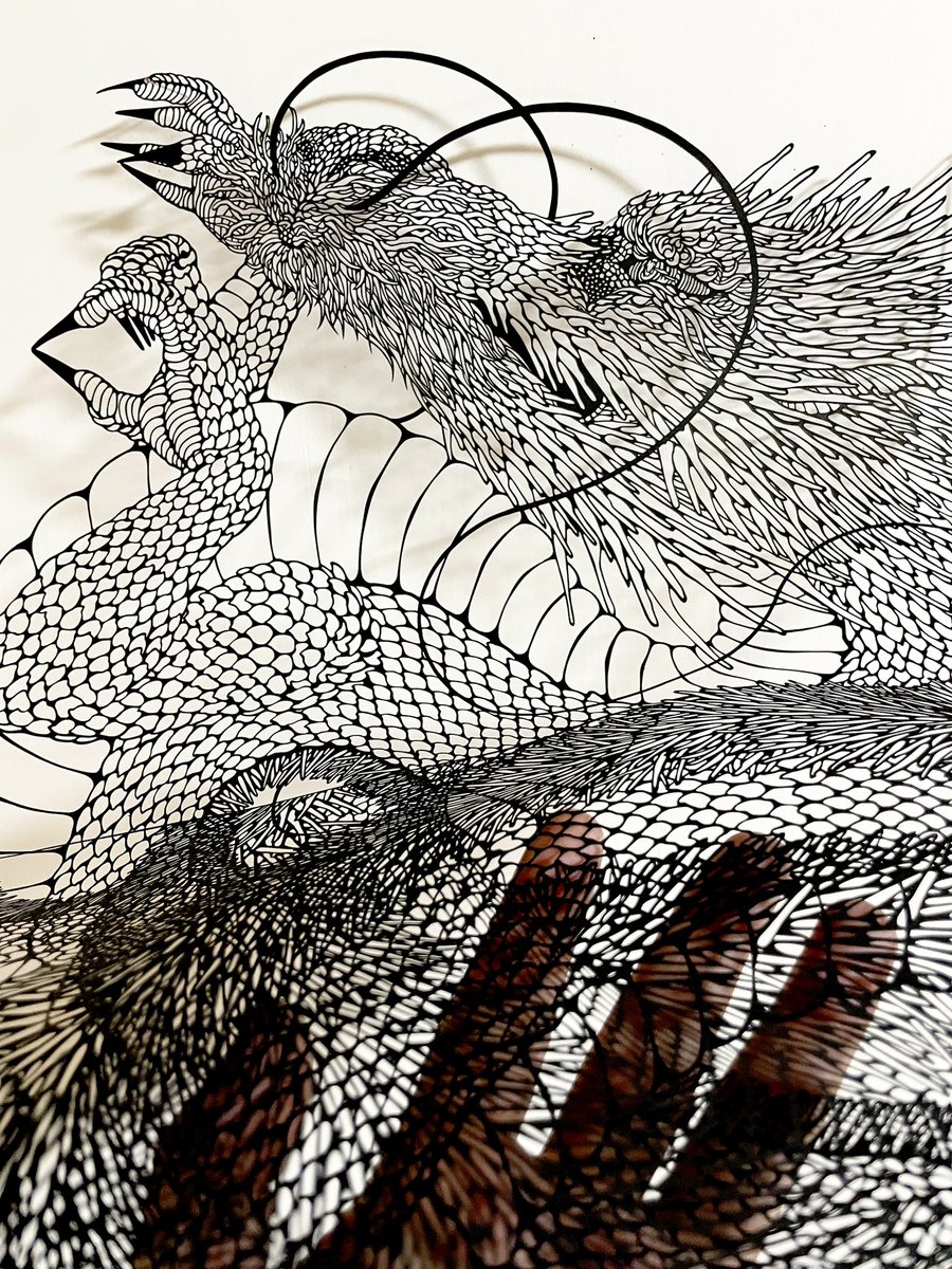 僕の作る切り絵は、一枚の紙を彩色すること無く、切るだけで立体感や陰影、テカリ、潤いを見せられるようにしています。 元は一枚の紙です。得た技術をどう活かすかを課題に、現在も精進を重ねる所存でございます。 #切り絵 #papercuttingart #art