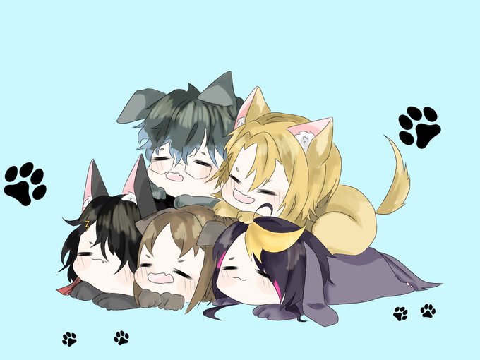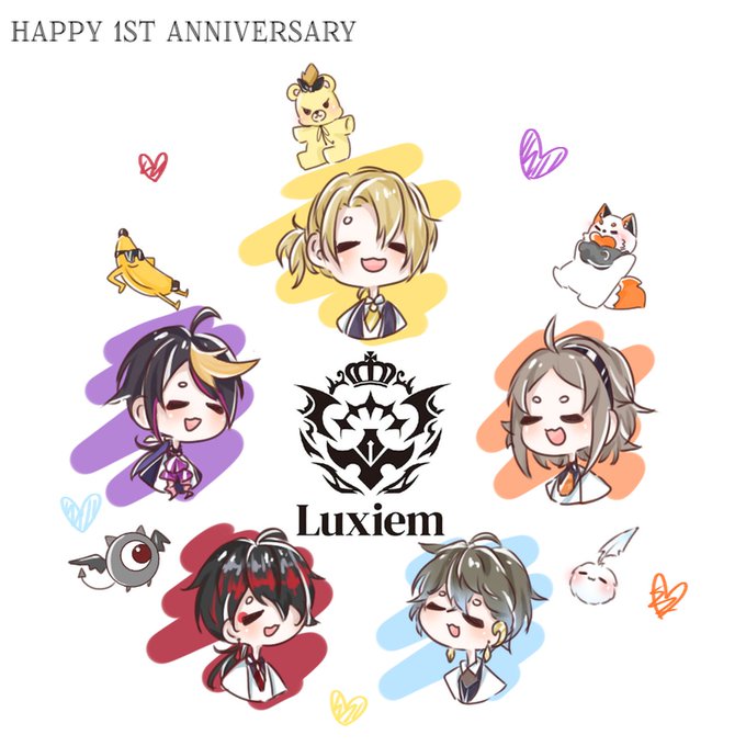 Happy 1st Anniversary 🌹 ❤️🧡💛💙💜👹🦊🦁🖋️👟 #LuxiemAnn1versary #Ikenography #MystArt #YaminoArt #drawLuca #Akurylic #Luxiem
