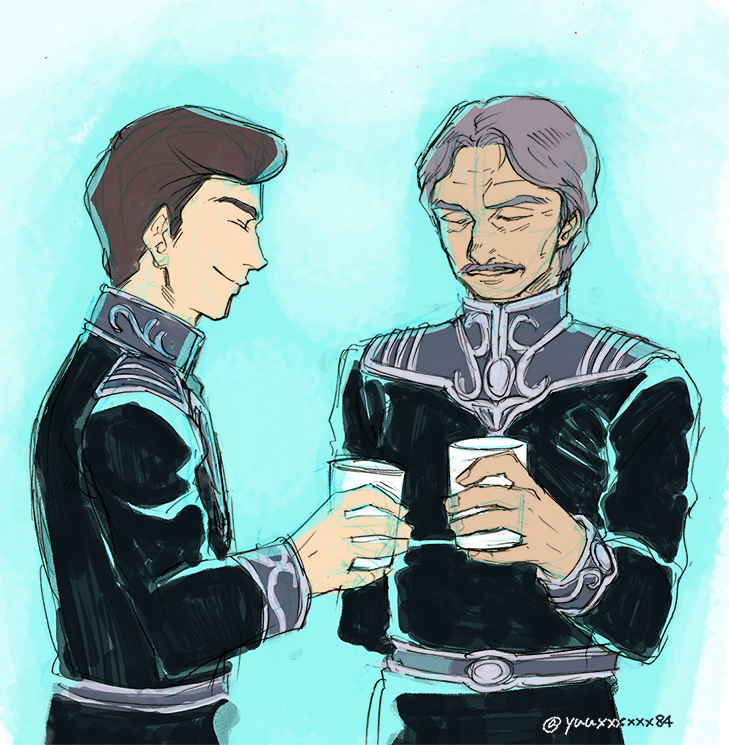ピクニックのポスターで端っこにいるし飲むのもふたりでだったのかな~ #銀英伝深夜の真剣お絵描き60分一本勝負