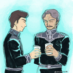 6 28 ピクニックのポスターで端っこにいるし飲むのもふたりでだったのかな~ #銀英伝深夜の真剣お絵描き60分一本勝負 15/06/05 23:05