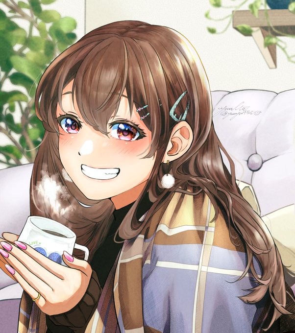 素材自撮り写真のさいとう先生を参考に可愛い女の子描きました‼︎ 素材がせっかくマフラーやコップなど小物を使って撮られたものだったのでそのまま使わせていただきました☺️ 自撮りの大切さも実感できて、 とても楽しかった🙌💕 #パルミー超自撮りイラコン