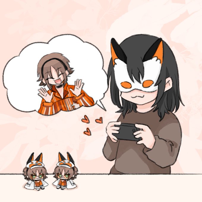 24 148 My friend give me the fox plushie for birthday T0T he and little Mysta take a picture are soooooooo cute so I draw it😭😭🧡 #MystArt 23/01/09 13:41