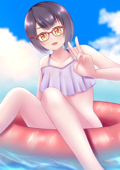 ぷかぷか #水着 #イラスト #絵柄が好みって人にフォローされたい #オリキャラ