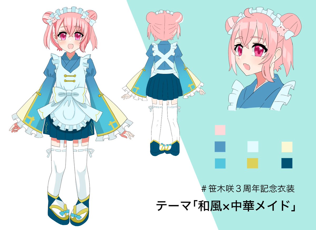 #笹木咲3周年記念衣装 #笹の絵 和風×中華メイドの衣装です🎋 間に合った〜…