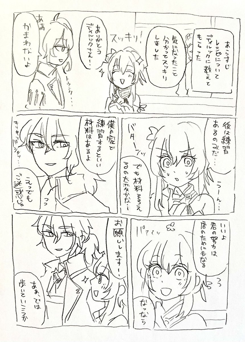 7 59 バーテンダー蛍ちゃんとディルックwithアカツキワイナリー(一応ディル蛍)落書き漫画 いつの間にかシリーズものになってしまったけど楽しいのでよし もうちょっとだけ続くんじゃ 22/03/16 09:56