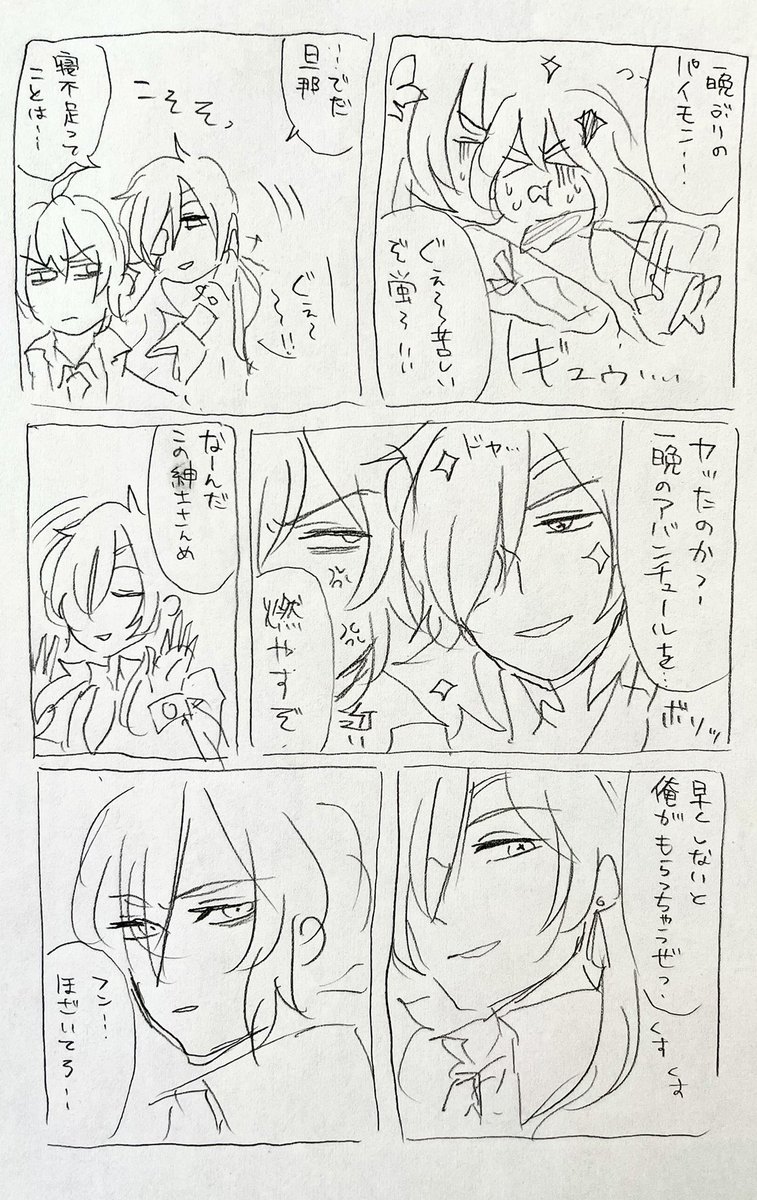 バーテンダー蛍ちゃんとチャールズwithディルック(一応ディル蛍)落書き漫画 昨日の続き