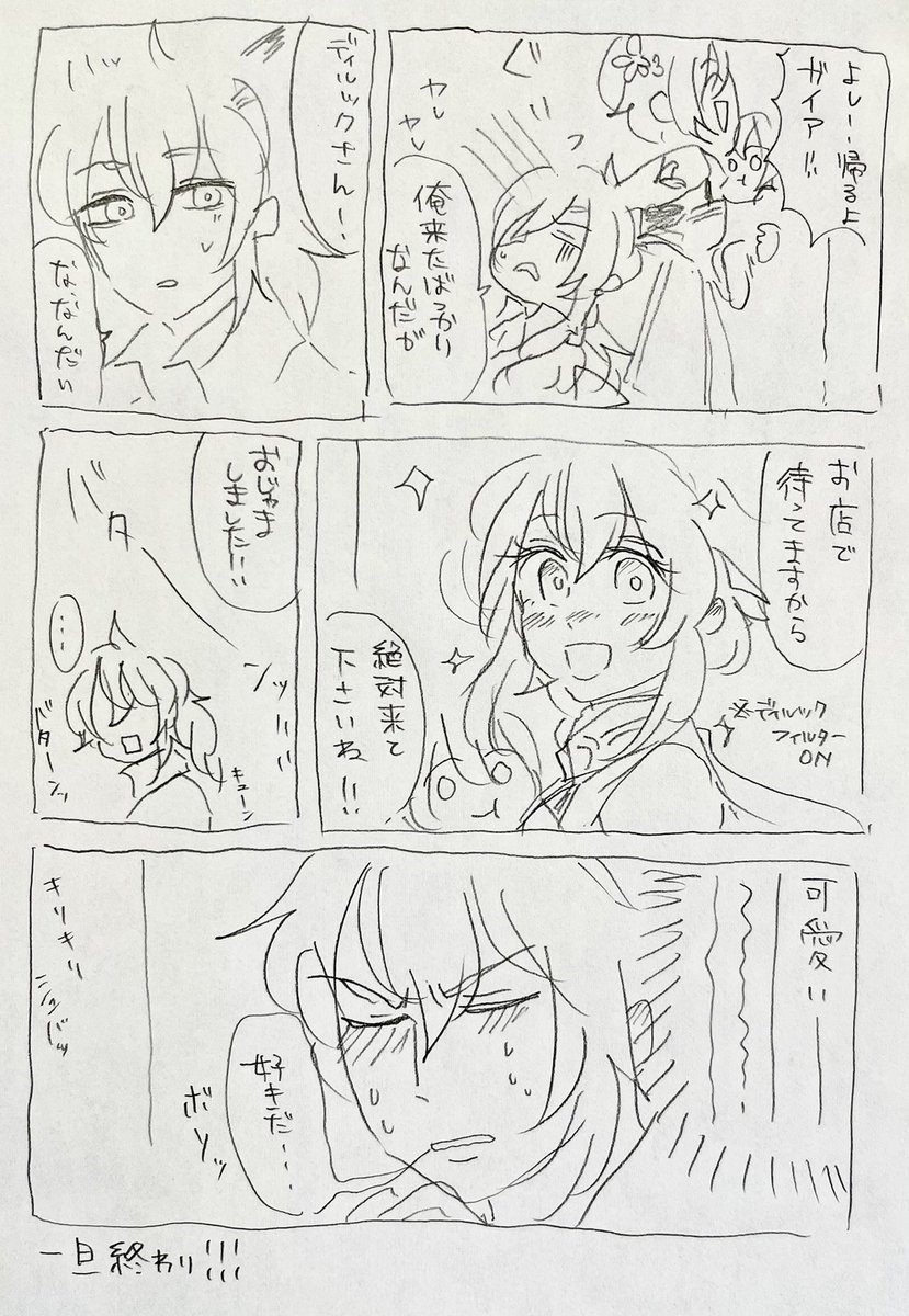 アカツキワイナリーはオーナーの恋路を応援してます 落書き漫画(一応ディル蛍)