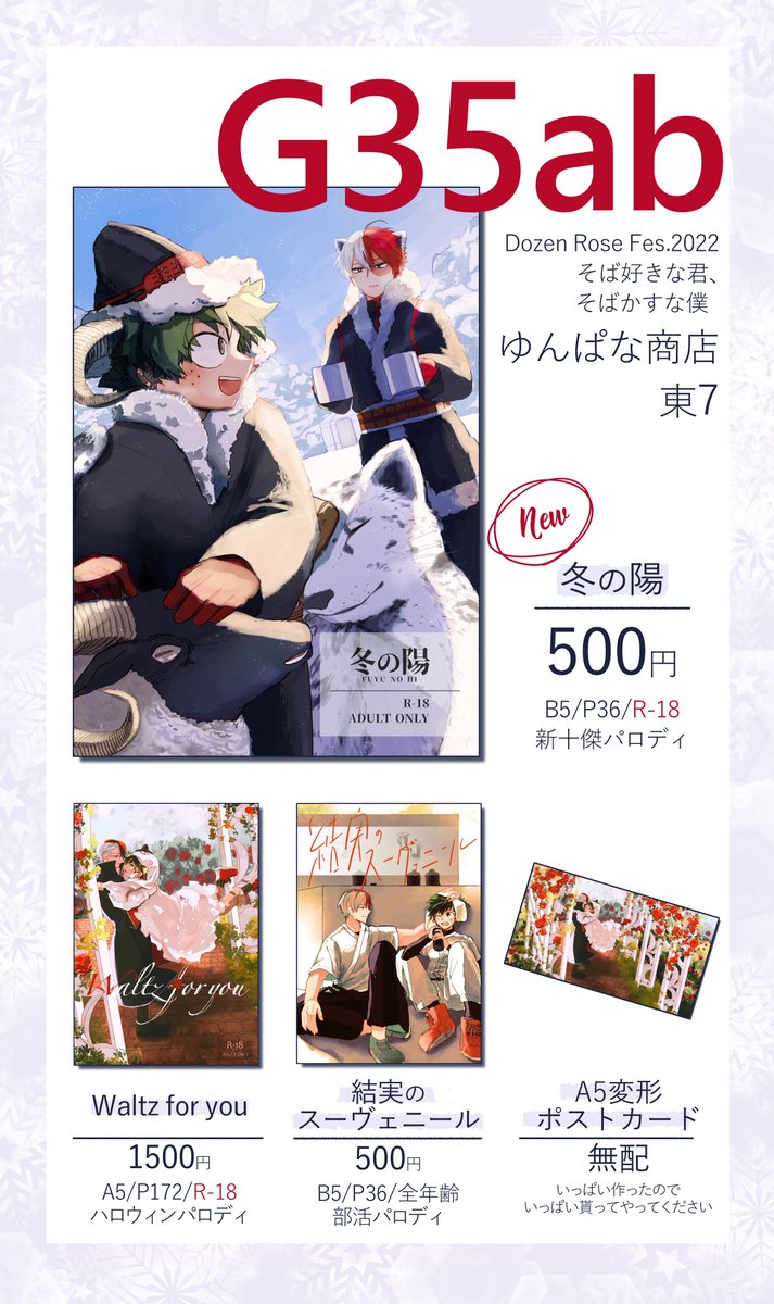 【12/11そばそばお品書き】 サンプル:pixiv.net/artworks/10325… 通販:ec.toranoana.jp/joshi_r/ec/ite… お取り置きフォーム:docs.google.com/forms/d/1SSgmT…