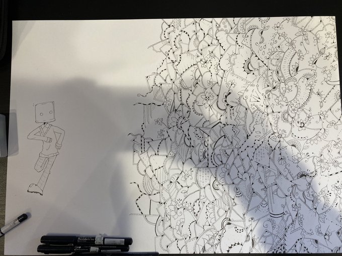 0 7 昨日もくりで話しながら描いてた作品 いろんな色を試そうとしてます もっともっと細かく描きたいけど無理せず焦らず…… #イラスト #絵 #art #ペン画 #私の頭の中 22/01/24 18:11