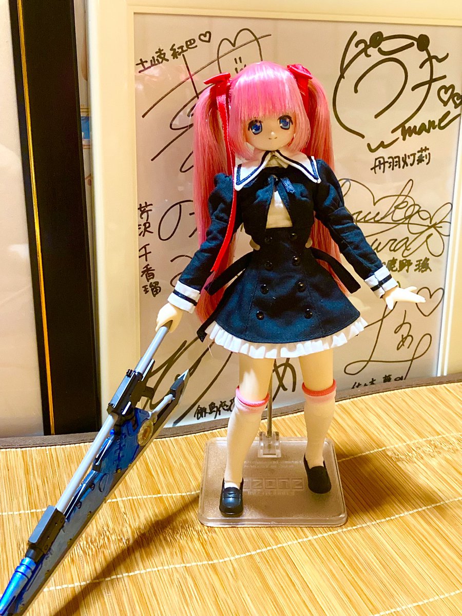 えっくすきゅーとの「Koron」ちゃんに百合ケ丘制服着せて遊びました~ charm持たせてみたり、オリジナルリリィ的な感じで(人・ω・) ツインテールが長いひめひめっぽい印象 #えっくすきゅーと #アサルトリリィドール部
