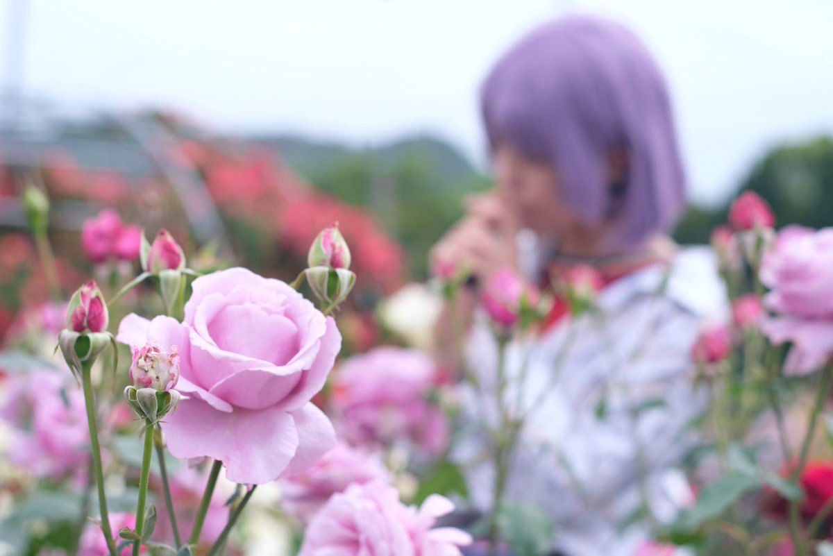 cosplay らいむちゃんに念願のムル個撮してもらいました🙏✨ 綺麗に咲いててどのバラの匂いもよかった🌹 雨降ったり晴れたりで太陽に振り回されつつたくさん撮ってくれてありがとう〜🤗💕 2枚目は速報用にいただいた写真📸 どこもほぼ満開でほんと綺麗だった🥺