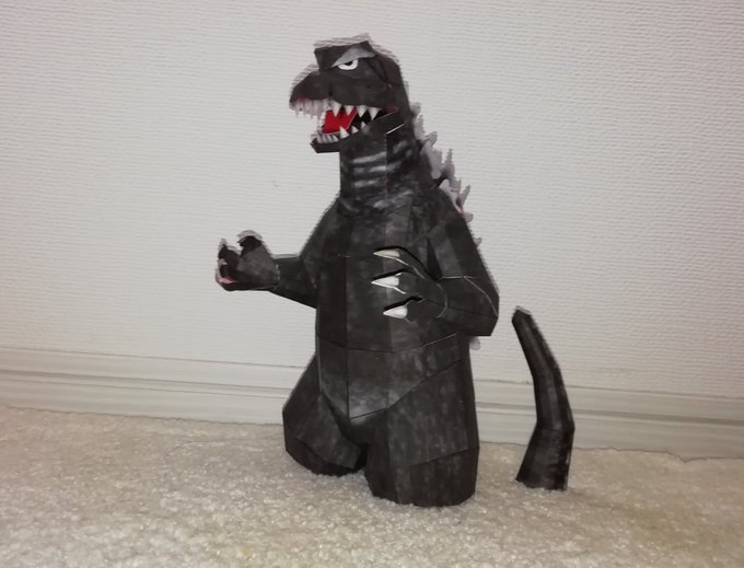 ゴジラのペーパークラフトです。モスラ対ゴジラの砂地から出現するあのシーンっぽく。 #ゴジラ #ペーパークラフト