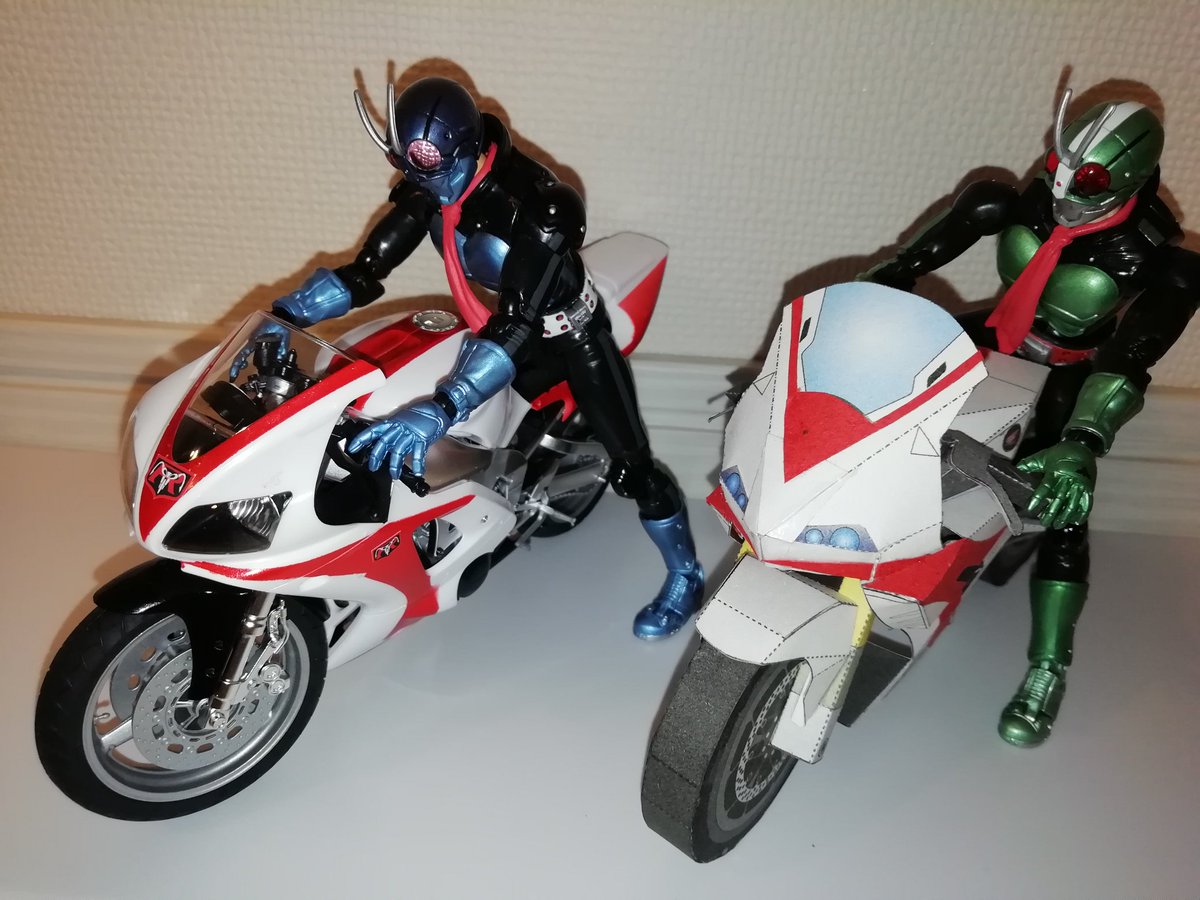 サイクロン号のペーパークラフトっす。フィギュアーツの1号2号が手に入ったのでホンダのサイトからの型紙でなんちゃってサイクロン号! #ペーパークラフト #サイクロン #シン仮面ライダー