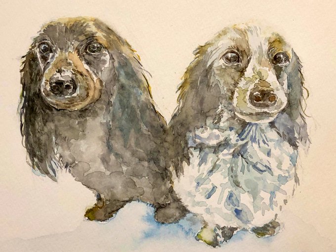 お友達のワンちゃん✨かわいい!モデルになってもらいました♪ 最近TL見れてなくて申し訳ありませんー🤧3.4月はバタバタしちゃいますね💦落ちついたらゆっくり見させてください🙏 #水彩画 #絵描きさんと繋がりたい