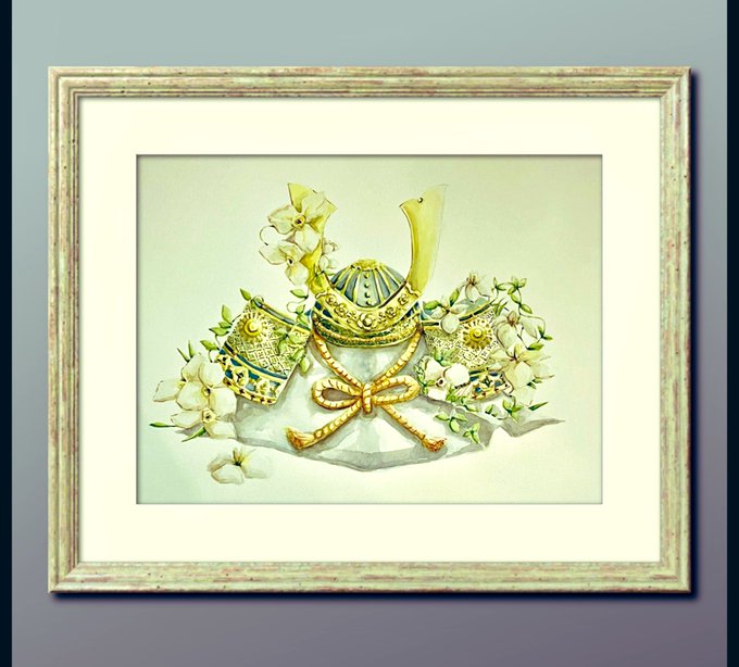 こどもの日😊 みなさま健やかに過ごせますように💕 兜の絵納品しました🫡ありがとうございました✨✨飾ってもらってるお店のインスタ貼り付けておきます🥰よかったら覗いてください👍可愛いお店です💕 instagram.com/mamame_officia… #絵描きさんと繋がりたい #水彩画