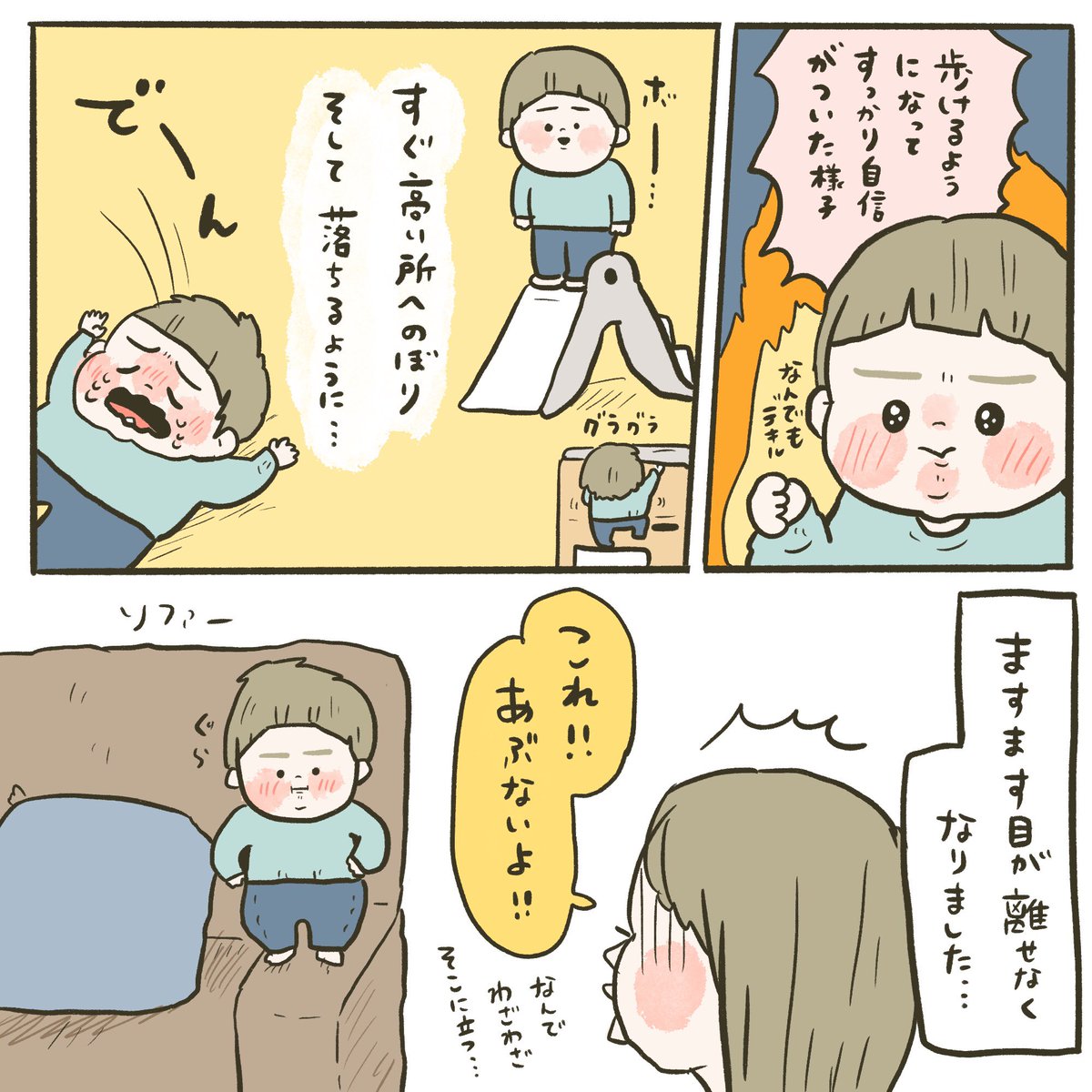 あんよ記念日🧸さらに目が離せなくなりました・・・ #漫画が読めるハッシュタグ #漫画 #赤ちゃんのいる生活 #育児漫画 #育児絵日記 #あんよ記念日