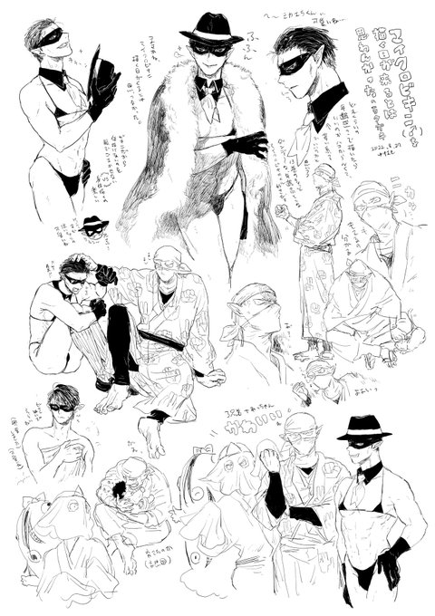 67 372 捏造が過ぎる✊👙👻三兄弟(拳ミカ)と、アイマスクもマイクロ👙もなく愚兄!ってもしてない👙を描きすぎて不安になった(?)ので描きかけのらくがき漫画の一コマ 22/10/10 01:35