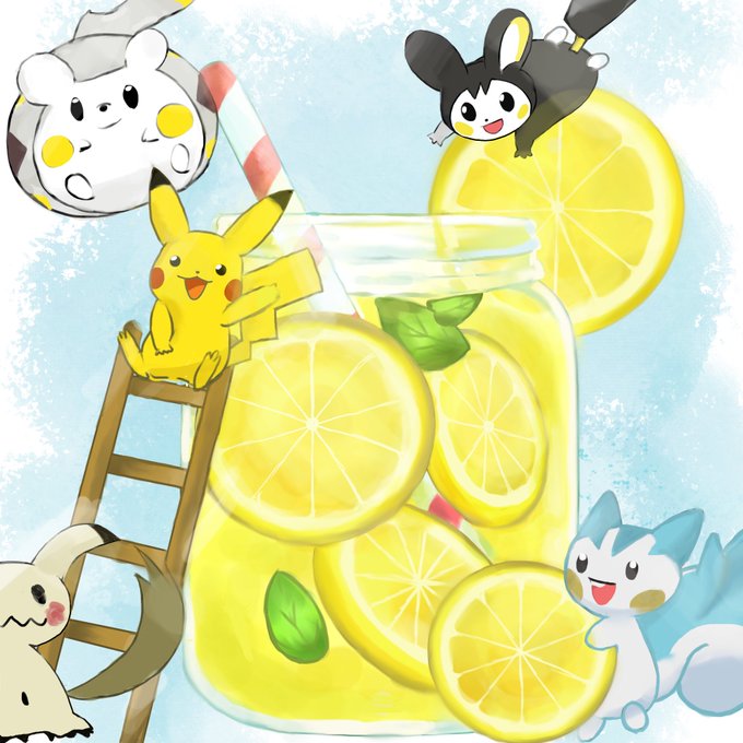 11 25 #ポケモン喫茶へようこそ レモネードと電気ねずみポケモンを描かせていただきました! ポケモンたちがカフェの準備をしているようなイメージにしました トゲデマルはとびはねるを使ってます! 23/04/13 00:00