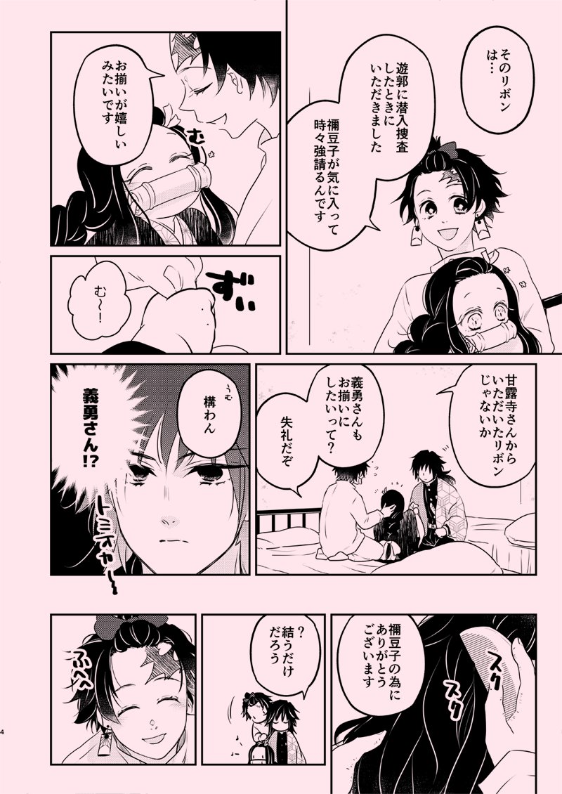 5/3 スパコミ【 東5 は55b colors 】 新刊➡️リボン!リボン!!リボン!!! B5/10ページ/100円/コピー本 ぎゆたんとねずこちゃんが、リボン🎀をつけてわちわちしてるほのぼの本。 イベント頒布のみ。後日他の折本とまとめて再録します。