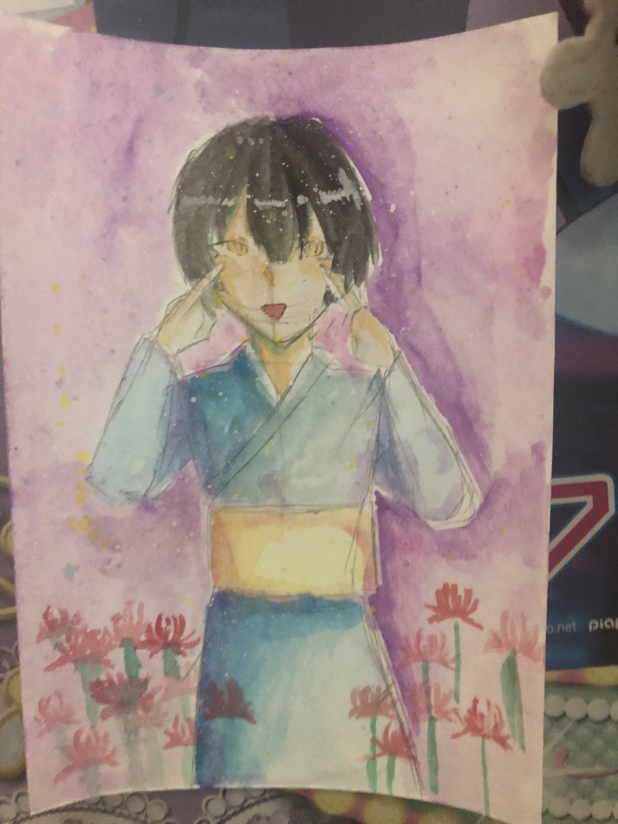 43日目 水彩画挑戦 #ヘタリア #本田菊 #水彩画 #アナログイラスト