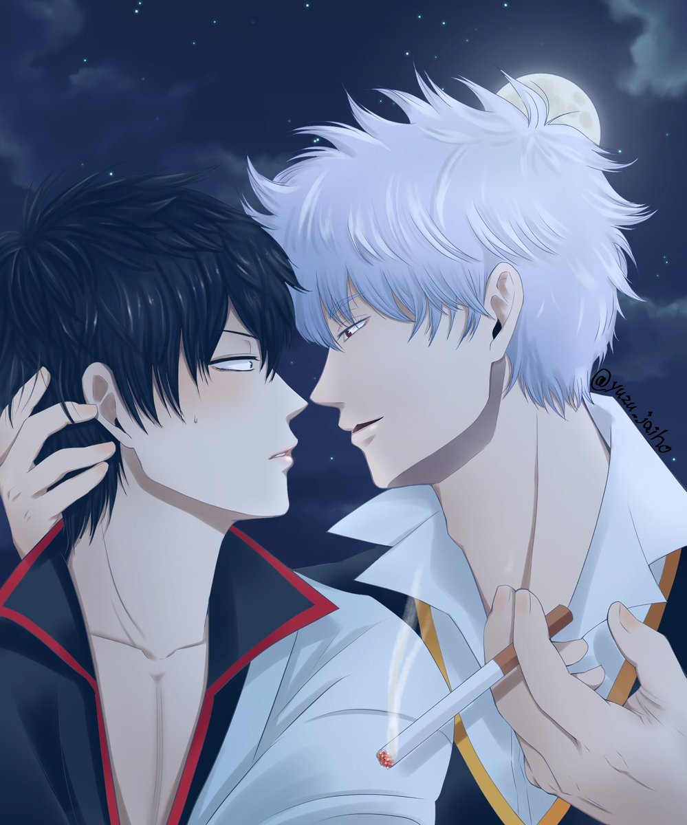 銀土/W副長 いちゃいちゃ 過去絵リメイクしました #銀土